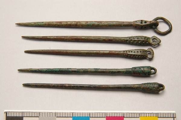 В погребении женщины, которая стала предметом исследования, ученые обнаружили пять браслетов из бронзы, две сережки из золота и сложное ожерелье из четырех сотен янтарных бусин. Также в захоронении были найдены три швейные иглы из бронзы.