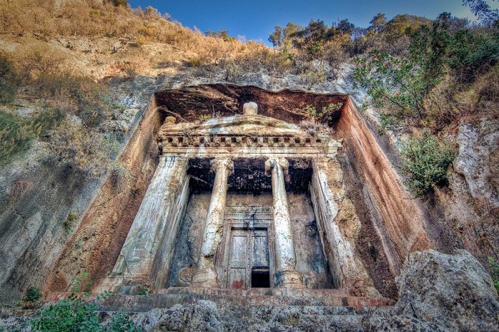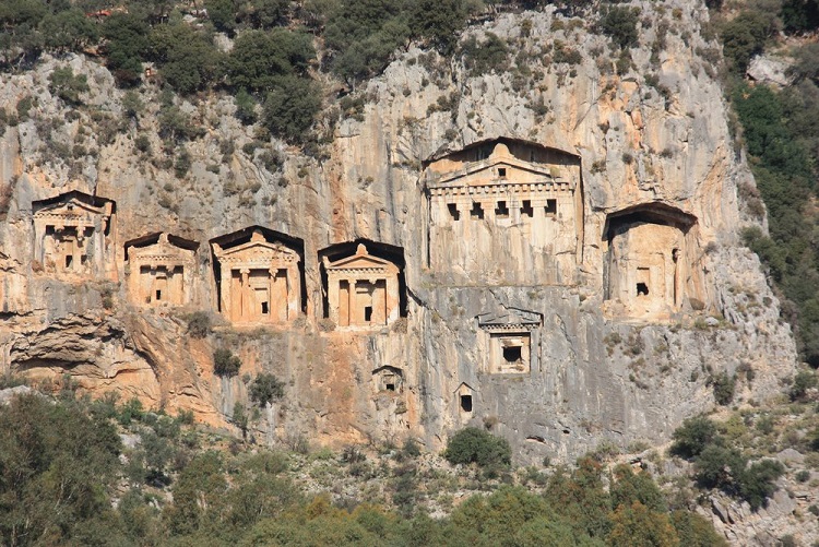 Самые сложные высеченные в скале гробницы - это те, которые вырезаны в форме ионических храмов, самый большой и самый известный в Телмессосе (Фетхие) – «Гробница Аминтаса».