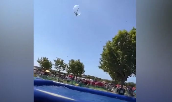 Другой очевидец рассказал, что ветер поднял зорб с мальчиком внутри над поверхностью бассейна, а затем шар упал на мусорный бак и лопнул от удара, выбросив ребенка на землю. Ребенка быстро доставили в больницу, где врачи обнаружили, что полученные им травмы оказались не опасными.