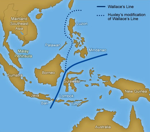 Эта граница (линия Уоллеса) названа в честь британского натуралиста Альфреда Рассела Уоллеса. В XIX веке он заметил, что животные на островах Индонезии и Малайзии сильно отличаются от тех, что обитают в Новой Гвинее и Австралии. Например, в Азии распространены обезьяны, тигры и слоны, а в Австралии преобладают сумчатые, однопроходные и какаду.