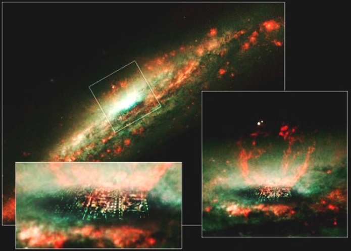 На снимках ученые увидели сияющую конструкцию, слишком правильной структуры, чтобы считать ее творением природы. О размерах ее говорить трудно. Даже «огромный» и «гигантский» никак не подходят для объекта, измеряемого в миллиардах километров. Наша планета была бы всего-навсего песчинкой на улице этого города.
