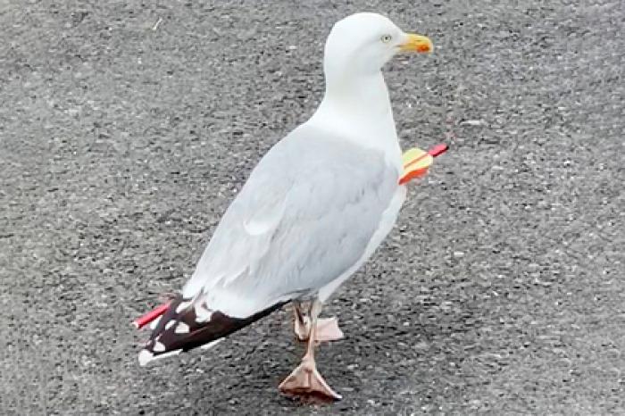 В английском прибрежном городе Блэкпул, графство Ланкашир, чайка со стрелой в груди уже два месяца продолжает летать и таскать еду у посетителей ресторанов быстрого питания. Об этом сообщает издание The Mirror.