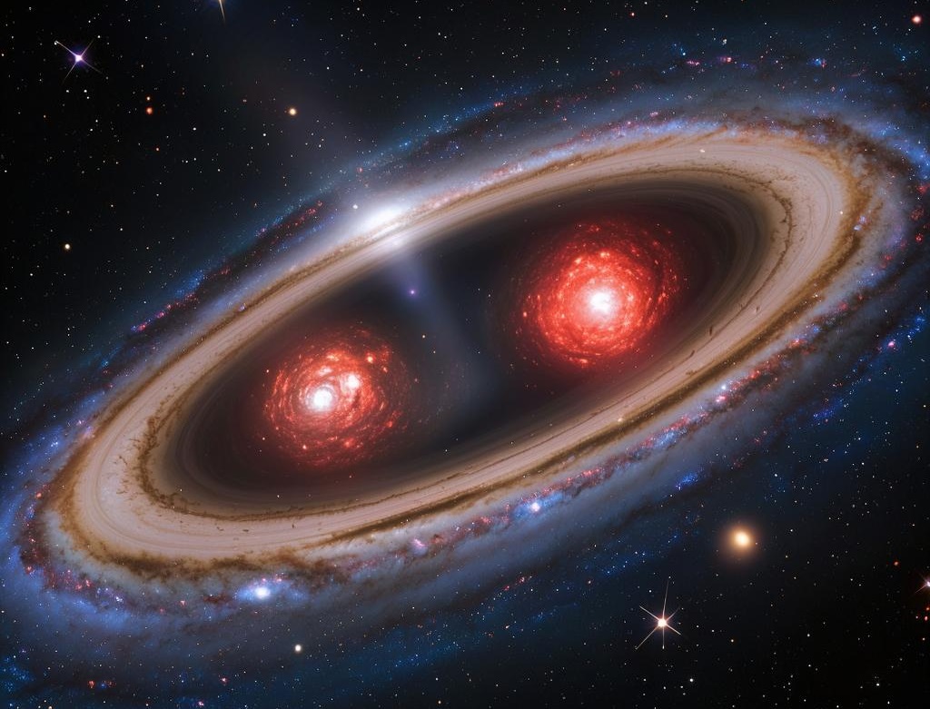 Исследователи из Йельского университета и Университета Копенгагена обратили внимание на необычную структуру, состоящую из двух красных ядер, расположенных внутри колец, образующих форму символа бесконечности. Эта форма является результатом слияния двух спиральных галактик.