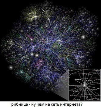 Если принять во внимание уже доказанный факт, что отдельные части грибницы способны обмениваться информацией между собой, то мицелий вполне можно сравнить с интернетом, где каждый отдельный ПК соединен информационными нитями с миллионами себе подобных. Только если Всемирная паутина находится под контролем человека, то что замышляет отдельно взятая грибница – одному только Богу известно.