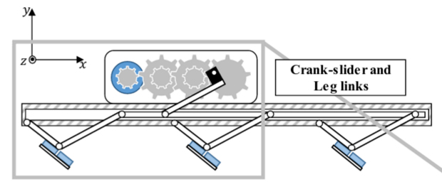 Схема ног и кривошипно-шатунного механизма для приведения их в движение