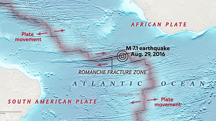 Разлом протяженностью менее 1 километра находится рядом с экватором на западном побережье Африки и в центре восточного побережья Бразилии. Магнитуда землетрясения, произошедшего четыре года назад в этом месте была выше 7 баллов. Только когда ученые исследовали снимки землетрясения, выяснилось, что его толчки следовали сначала в одном направлении, а затем резко развернулись и направились обратно. Ранее такой вариант событий ученые могли представить только лишь в теории.