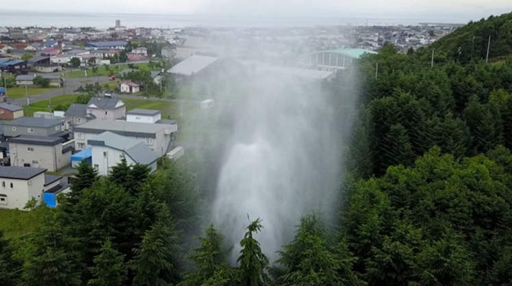 Каждый год 9 августа в маленьком японском городке Ошамамбе проводится ежегодный летний фестиваль, завершающийся традиционной процессией у местного синтоистского храма. Однако фестиваль этого года был омрачен необычным происшествием, когда посреди леса на территории святилища извергся огромный гейзер. Местные жители проснулись от постоянного рева, столба воды, поднимающегося над кронами деревьев, и запаха серы в воздухе. Таинственный гейзер выбрасывает воду в течение последних нескольких недель и не показывает никаких признаков замедления.
