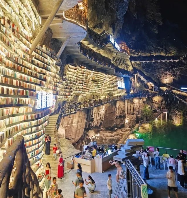 Удивительная библиотека, высеченная в скале, притягивает туристов Китая