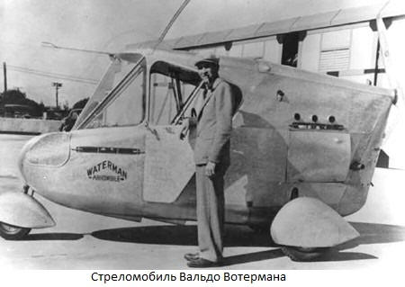 Созданный Вальдо Вотерманом «стреломобиль» летал. Крылья были съемными. Это была первая действительно летающая модель. Мощность мотора – 100 л.с., скорость 200км/ч в воздухе и 110 км/ч на земле. Были построены 3 аппарата, и заказаны еще 6, но финансировавшая проект компания «Студебеккер» отказалась от него, сославшись на высокие затраты.
