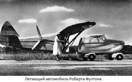 Роберт Фултон, родственник создателя парохода, чтобы встать вровень со своим знаменитым предком, построил «Аэрофибию». Шесть цилиндров, 150 л.с, 160км/ч в воздухе и 80 км/ч на земле. Летающий автомобиль Фултона первым получил сертификат от Управления Гражданской авиации США. Машина так и осталась в опытном экземпляре, поскольку конструктор не смог решить проблему дальнейшего финансирования проекта.