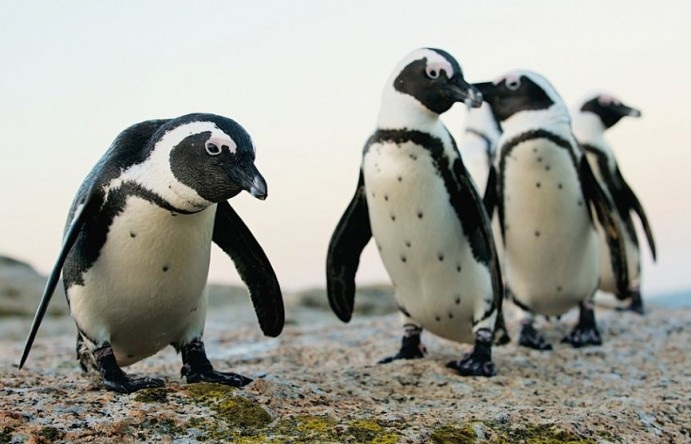Африканские пингвины обитают на побережье и островах южной Африки - они занесены в красную книгу. По данным Международного союза охраны природы, численность африканских пингвинов стремительно сокращается.