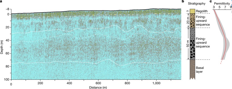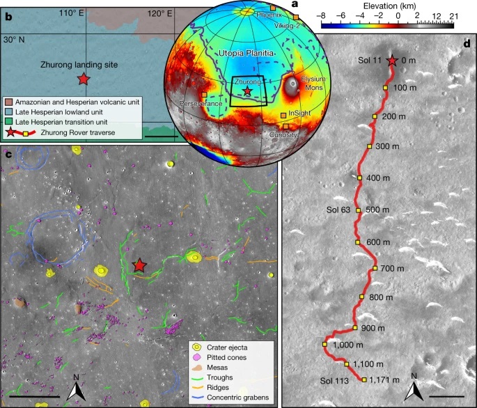 Марсоход «Чжужун» обнаружил, что бассейн равнины Утопия разделен на несколько подповерхностных слоев общей толщиной около 70 метров.