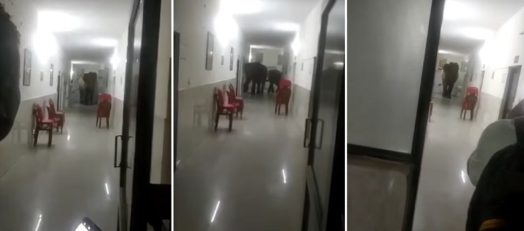 Очевидцы произошедшего сняли животных на видео. На кадрах видно, как один из слонов зашел в коридор больницы задом наперед, а после замер и начал наблюдать за людьми. Спустя какое-то время он протиснулся в дверной проем и скрылся в одной из комнат. За ним последовали еще два слона.