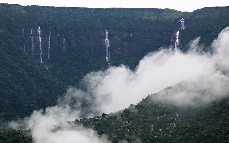 Этот экстремальный климат Моусинрама вызывает уникальные погодные явления, невиданные в большинстве частей света. Одним из них является образование «черапунджи» или живых водопадов. Из-за огромного количества осадков, выпадающих в этом регионе, вода просачивается сквозь камни и стекает по склонам холмов, создавая водопады и ручьи, которые быстро появляются и исчезают.