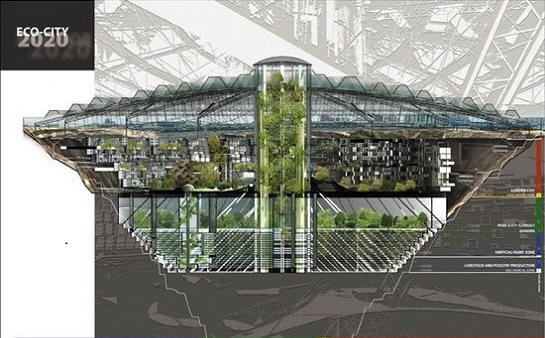 Согласно проекта город будет состоять из трех уровней. На каждом кроме жилой зоны запроектирована лесопарковая зона отдыха. Население планируется более 100.000 человек. Эко-сити будет накрыт светопрозрачным куполом, защищающим жителей от неблагоприятного воздействия сурового климата, характерного для Восточной Сибири. Энергией город будут обеспечивать солнечные батареи, размещенные на гигантской стеклянной крыше.