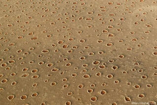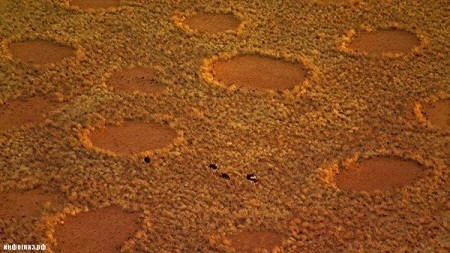 Намибийская пустыня в привычном для нас представлении пустыней не является. Кроме районов, где кроме песка нет действительно ничего, есть зоны, покрытые густым травяным покровом. И среди этого буйства зелени – тысячи проплешин почти идеально круглой формы, диаметром от 2 до 15 м, собранные в группы. С момента их обнаружения в 1971 году ученые биологи пытались найти объяснение этому странному явлению. Выдвигались множество теорий.