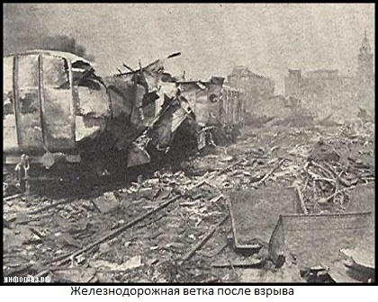 В 16:06 раздался взрыв. Образовавшаяся приливная волна разметала суда. Пожарные машины снесло с пирса как хлебные крошки со стола. От полусотни пожарных впоследствии нашли лишь обугленные каски. Сотни горящих кип хлопка, разлетевшиеся на сотни метров, стали очагами десятков пожаров. Загорелись суда, портовые сооружения, склады.