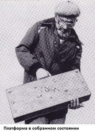 К статье были приложены фотографии. Гравитолет представлял собой платформу размером чуть больше сиденья от стула, на которой едва мог поместиться один человек и стойки управления.