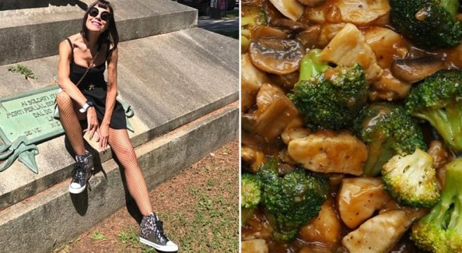 Утром, пока не пройдет тренировка, женщина не завтракает, но после занятий употребляет различную выпечку с чашкой капучино. В полдень, в качестве перекуса, итальянка ест апельсины, бананы и прочие фрукты. На обед у нее насыщенная белками пища, которая включает фасоль, морковь, брокколи или грибы в соевом соусе. На ужин у женщины куриная грудка с фасолью и морковью. В ее рацион также могут входить салаты из свежих овощей, макароны с овощами и оливковым маслом. Причем для приготовления пищи женщина использует только оливковое масло.