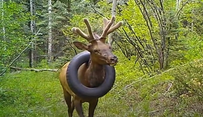 Никто из работников национального парка так и не может понять, как автомобильная покрышка оказалась на шее животного.