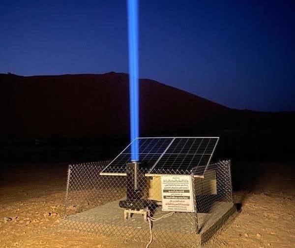 Саудовская Аравия размещает лазерные излучатели на солнечных батареях рядом с водными ресурсами и колодцами, чтобы направлять заблудившихся в пустыне людей.