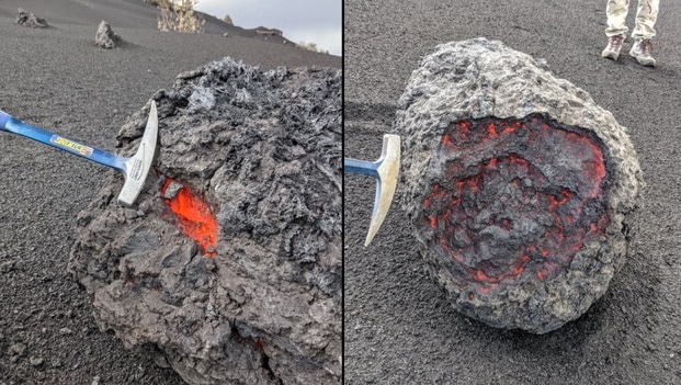 Немецкий геохимик и вулканолог Харри Гейгер поделился видео, на котором одна из этих лавовых бомб скользит на полной скорости по усыпанному пеплом склону.