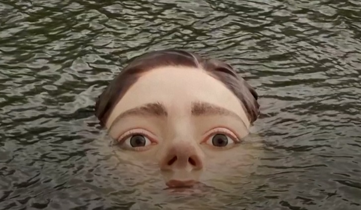 В реке Нервьон испанского города Бильбао появилась скульптура тонущей девушки — огромная голова из стекловолокна, которая во время приливов скрывается под водой и снова появляется во время отливов.