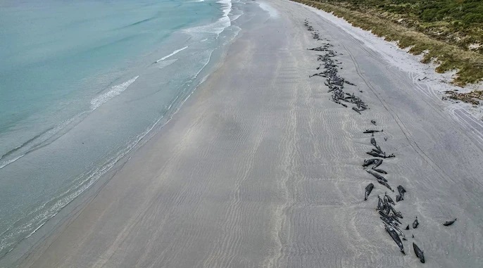 Самый крупный массовый выброс на берег в современной истории произошел в 1918 году, когда 1000 китов оказались выброшенными на берег у тех же островов Чатем.