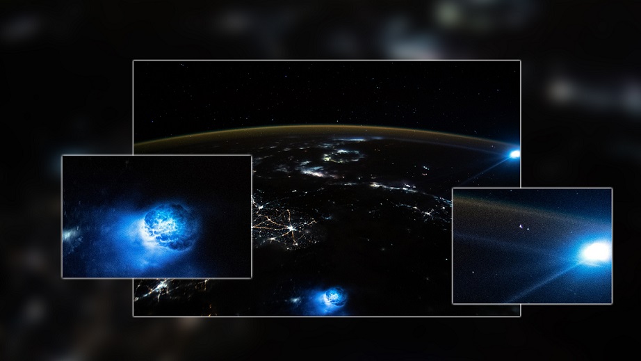 Астронавт на борту Международной космической станции (МКС) получил необычный снимок Земли из космоса, на котором видны два голубых пятна света, образовавшихся в атмосфере нашей планеты.