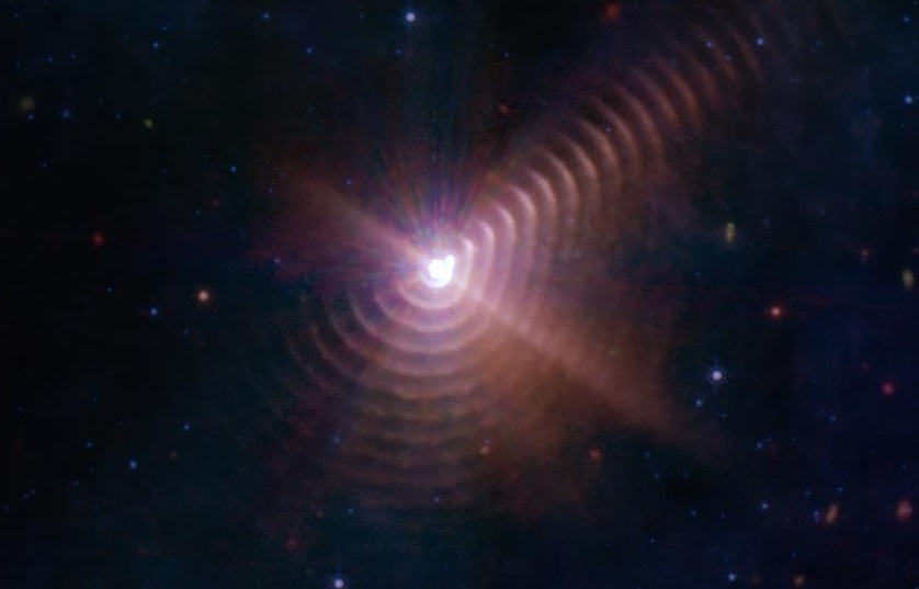 Самая мощная в мире обсерватория запечатлела звездную систему, которая образует кольца каждый раз, когда они становятся ближе. На изображении, переданном космическим аппаратом, видны 17 таких концентрических колец пыли.