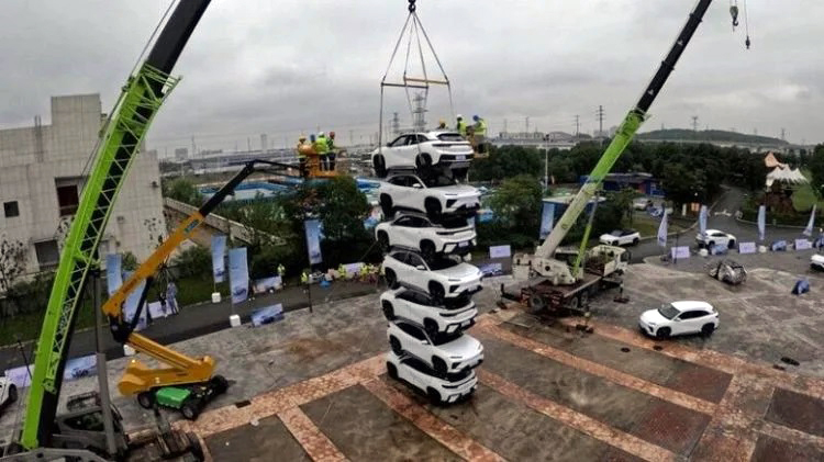 Именно поэтому Chery решила обратить внимание на прочность своего алюминиевого кузова. В соответствии с данными Страхового института безопасности дорожного движения, транспортные средства должны выдерживать вес, превышающий их собственный, как минимум в четыре раза. Однако Chery пошла дальше и создала удивительное зрелище, уложив семь автомобилей eQ7 друг на друга, а затем установив специальные металлические платформы для их крепления. Это значит, что автомобиль, находящийся внизу стопки, выдерживает вес шести других eQ7, установленных сверху.