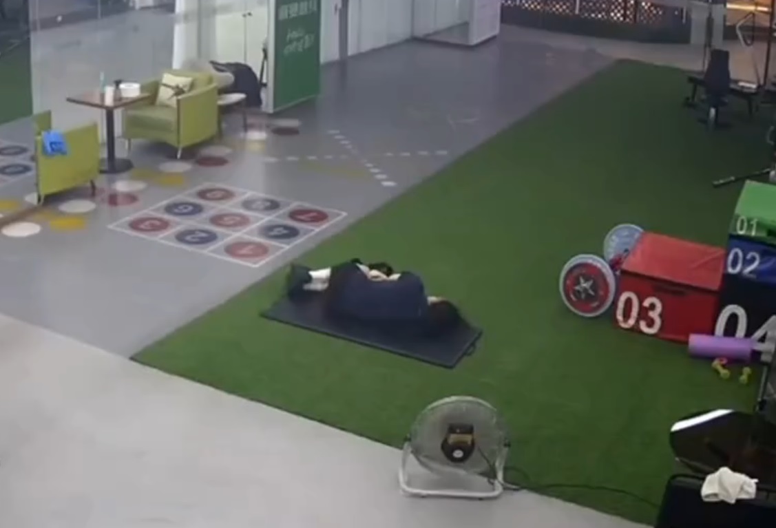 Согласно записи видеокамер, женщина активно занималась примерно пять минут, после чего внезапно погрузилась в глубокий сон. Она улеглась на гимнастический коврик и проспала около трех часов подряд, несмотря на громкую музыку и постоянное движение вокруг нее.