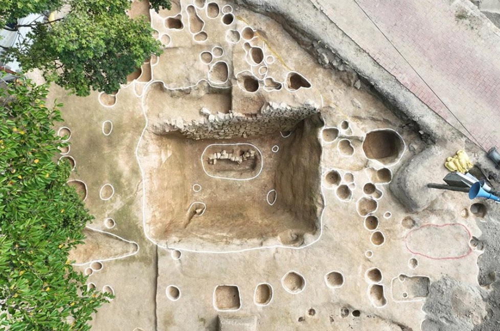 На месте постройки исследователи нашли керамический сосуд с пятью старинными китайскими монетами, захоронённый в качестве жертвоприношения духам земли («чидзингу»). Подобные обычаи свидетельствуют о глубоких религиозных убеждениях и представлениях жителей того времени о значимости строительных мероприятий. Монеты играли символическую роль, защищая строительство от неблагоприятных влияний и способствуя удачному исходу проекта.