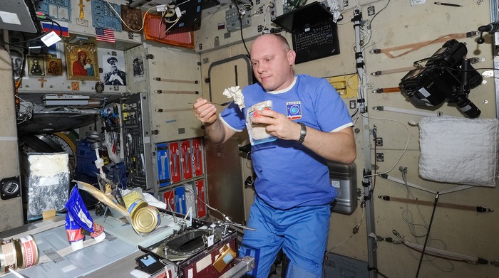 От переработки пищи в желудке образуются газы, которые в виде отрыжки выходят наружу. В космосе это сделать нельзя – сразу начинается рвота. Поэтому кушать приходится очень избирательно и уж, конечно же, не «под горло», как привыкли многие на Земле.