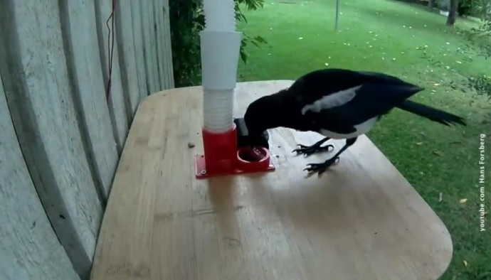 Шведский ученый Ганс Форсберг сделал "умную" кормушку для сорок. Она выдает птицам орехи в обмен на крышки от пивных бутылок. Таким образом, пернатые помогают собирать мусор в районе, где живет изобретатель.