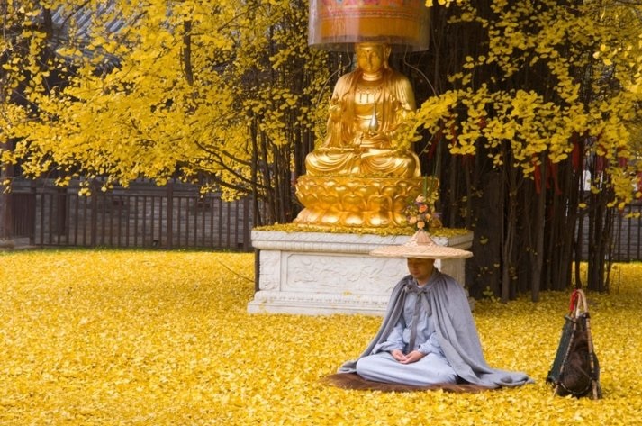 Этим невероятным зрелищем любуются каждый год туристы и местные жители. В начале ноября в буддистский храм Гу Гуаньинь в китайских горах Чжуннань съезжаются туристы и паломники, чтобы полюбоваться «золотым» деревом.