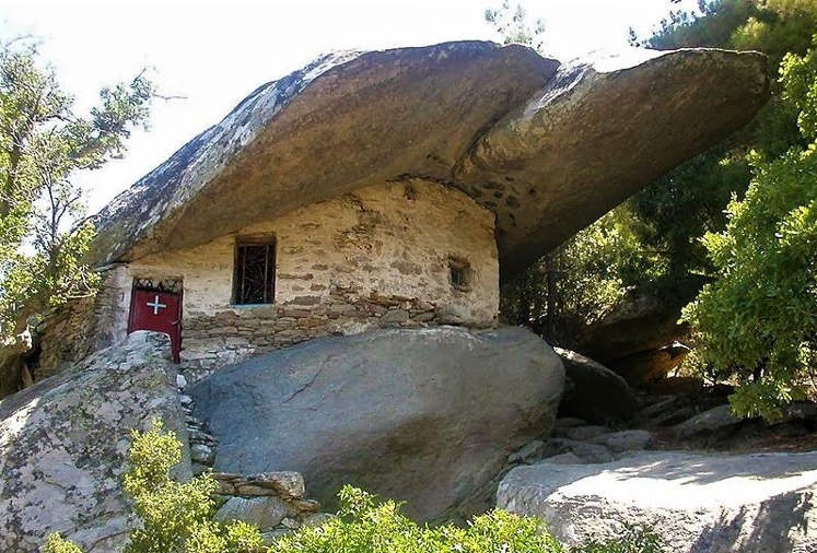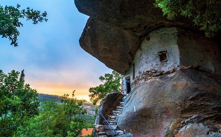 На греческом острове Икария в Эгейском море огромное количество замаскированных домов, построенных под гигантскими скалами, чтобы их было труднее обнаружить пиратам.
