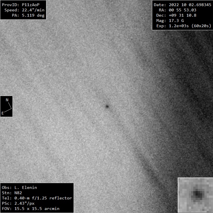О своем открытии Еленин сразу же сообщил на странице подтверждения NEOCP. Для ученого это 15-й открытый околоземный астероид.