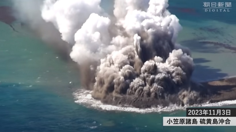 Магма достигла поверхности моря к 30 октября и начала скапливаться, образуя новый остров. Профессор вулканологии Сецуя Накада из Токийского университета отмечает, что извержение меняется, а выброс вулканического пепла продолжается взрывными темпами.