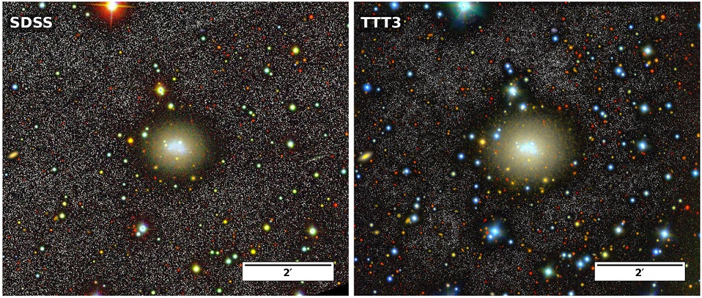 Фото из открытых источников / Галактика NGC6789, снятая в рамках проекта Sloan Digital Sky Survey (слева), и более детальное изображение, полученное телескопом TTT3 (справа) / Sloan Digital Sky Survey