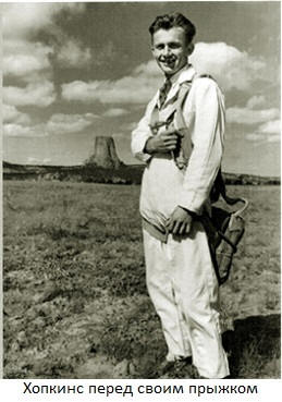 В 1941 оду ас-парашютист Джордж Хопкинс решил покорить скалу, но несколько необычным способом: не поднимаясь на нее, а спустившись на ее макушку на парашюте. Спуск был произведен филигранно. Рассчитав все до миллиметра, Хопкинс приземлился в самом центре площадки и мгновенно стал американским героем. Эйфория у парашютиста прошла быстро. Оказалось, что спуститься с горы еще труднее, чем подняться на нее.
