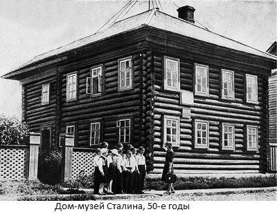 Поздним мартовским вечером 1953 года заведующий музеем, готовя отчетную документацию, задержался допоздна. Закончив дела, он оделся, вышел в коридор и услышал неторопливые тяжелые шаги. Оглянулся. Невысокий грузный человек во френче шел по коридору, остановился у комнаты ссыльного Джугашвили и взялся за ручку. На мгновение обернулся, смерил с ног до головы остолбеневшего заведующего пристальным взглядом и скрылся за дверью. На следующий день радио сообщило о смерти «вождя народов».