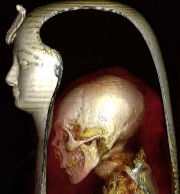 В исследовании, опубликованном в журнале Frontiers in Medicine, ученые описали внешний вид, состояние здоровья, причину смерти и стиль мумификации королевской особы. Они исследовали мумию с помощью компьютерной томографии и сгенерировали двух - и трехмерные изображения маски для головы, бинтов и практически развернутой мумии.