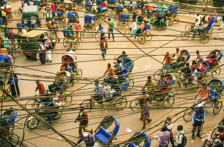 Еще одна особенность местного транспортного сообщения — рикши. Именно из-за них средняя скорость передвижения в городе не превышает 30 км/ч, а на небольших улочках так вообще падает до 10 км/ч. Рикшами пользуются все без исключения. Вообще, увидеть пешего бангладешца — большая редкость. Даже если надо сходить 500 м до магазина за продуктами, бангладешец поедет на рикше.