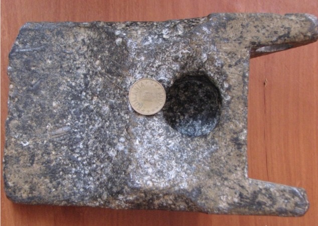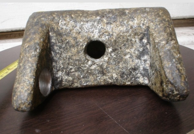 Это выглядел так, словно являлся частью какого-то сложного современного механизма, в нем имели отверстия для креплений этого предмета к чему-то и он имел клиновидную форму.