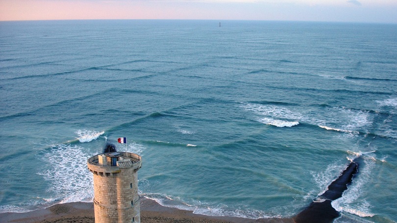 Когда встречные волны сталкиваются под прямым углом, они иногда образуют квадратные волны (или прямоугольные волны). Это редкое явление удивляет, создавая на поверхности воды рисунок, похожий на шахматную доску, что превратило остров Иль-де-Ре недалеко от Ла-Рошели во Франции в туристическую достопримечательность (на фото выше).