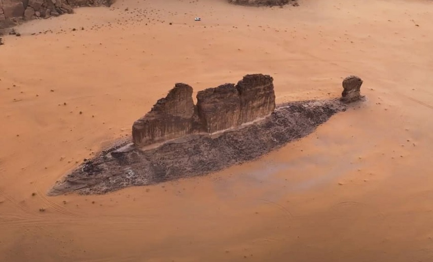Недавно Аль-Энази рассказал CNN Travel, что фотографировал живописную местность и неожиданно перед ним появилась небольшая гора. Это скальное образование больше напоминало рыбу, вынырнувшую из пустыни.