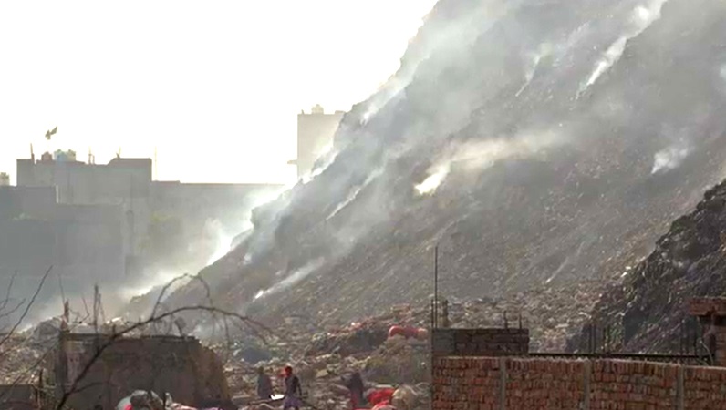 Периодически вспыхивают пожары, вызванные высокой температурой и газообразным метаном. В этом году Департамент пожарной службы Дели отреагировал на 14 пожаров, некоторые из которых могут глубоко под кучей тлеть неделями или месяцами. Мужчины, женщины и дети работают поблизости, разбирая мусор в поисках каких-нибудь предметов на продажу.