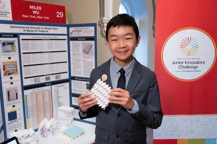 14-летний школьник Майлз Ву из Нью-Йорка недавно выиграл премию $25 тыс. за свою работу, основанную на древнем японском искусстве оригами. Его проект привлек внимание жюри конкурса Thermo Fisher Scientific Junior Innovators Challenge благодаря необычному применению традиционной техники складывания бумаги Miura-ori, известной своей способностью компактно сворачиваться и разворачиваться. Об этом сообщает Business Insider.