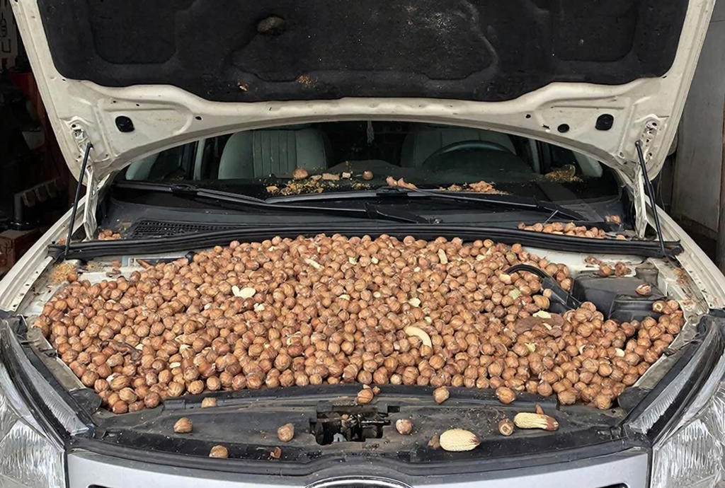 Осмотр машины выявил неожиданную находку: моторный отсек и воздуховоды оказались заполнены орехами фундука общим весом около 20 кг. По словам владельца, автомобиль большую часть времени находился в гараже, что исключает вероятность проникновения белок.